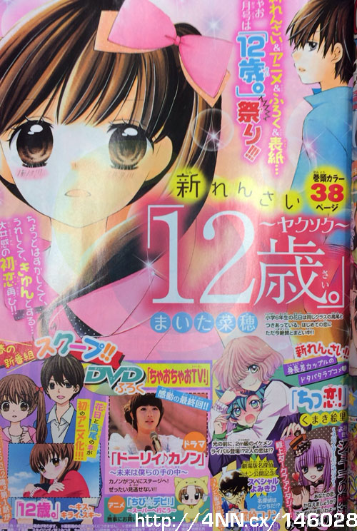 Nao Maita ha cominciato a pubblicare il manga nel 2012 e la Shogakukan ne ha stampato il terzo volumetto a Novembre dell’anno scorso. Sullo stesso volume di Ciao che vedrà la pubblicazione del DVD, inoltre, l’autrice aprirà un nuovo arco narrativo della serie stessa, intitolato 12-Sai ~Yakusoku~ (Dodici anni: promesse). In aggiunta al capitolo, che sarà lungo trentotto pagine, e si aprirà con una pagina a colori, il numero di Maggio di Ciao festeggerà il manga di Nao Maita anche con un’illustrazione in copertina e un bonus speciale.