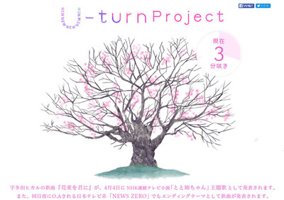 Il sito web ufficiale di Utada Hikaru ha inaugurato una pagina per il nuovo progetto della cantate, il “New-Turn Project“, che segnerà il suo ritorno alla musica. Utada Hikaru sarà l’interprete della canzone Hanataba o Kimi ni (Un bouquet per te) che farà da tema alla serie televisiva di Toto Neechan, e sarà anche l’interprete della canzone che farà da tema finale al programma News Zero della NTV. Entrambe le canzoni faranno il loro debutto il 4 Aprile di quest’anno.