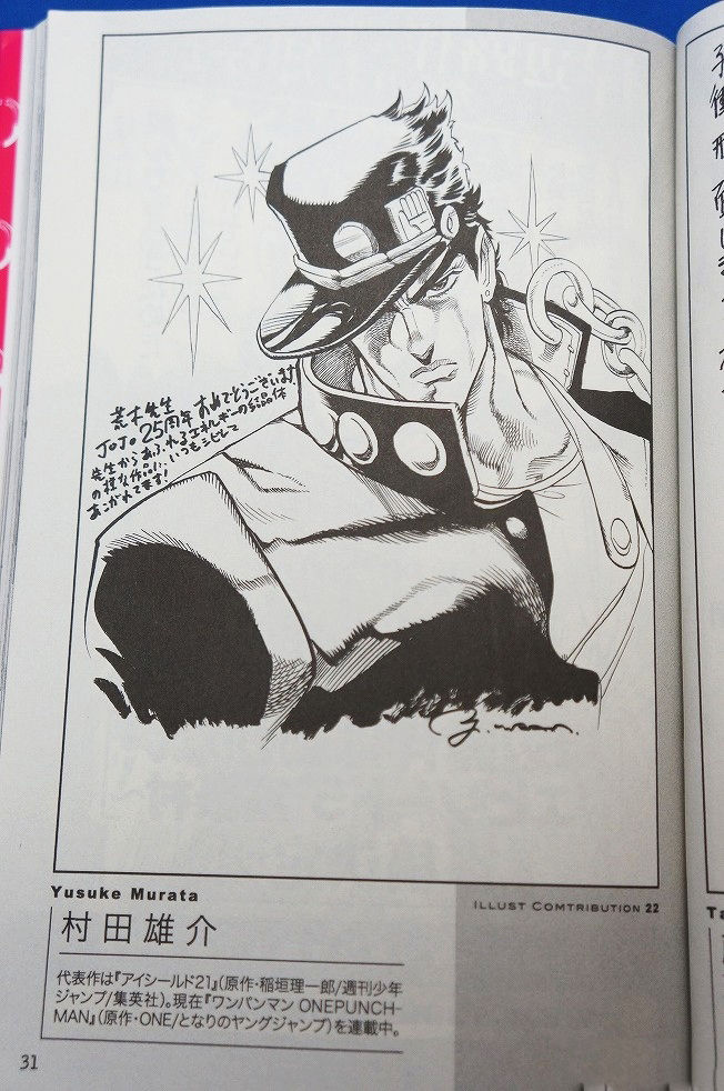 …tra cui anche Yuusuke Murata (Eyeshield 21), che ci presenta un altro Jotaro col volto da duro e il cappellino un pò rovinato, come se ci fosse passato vicino Josuke.