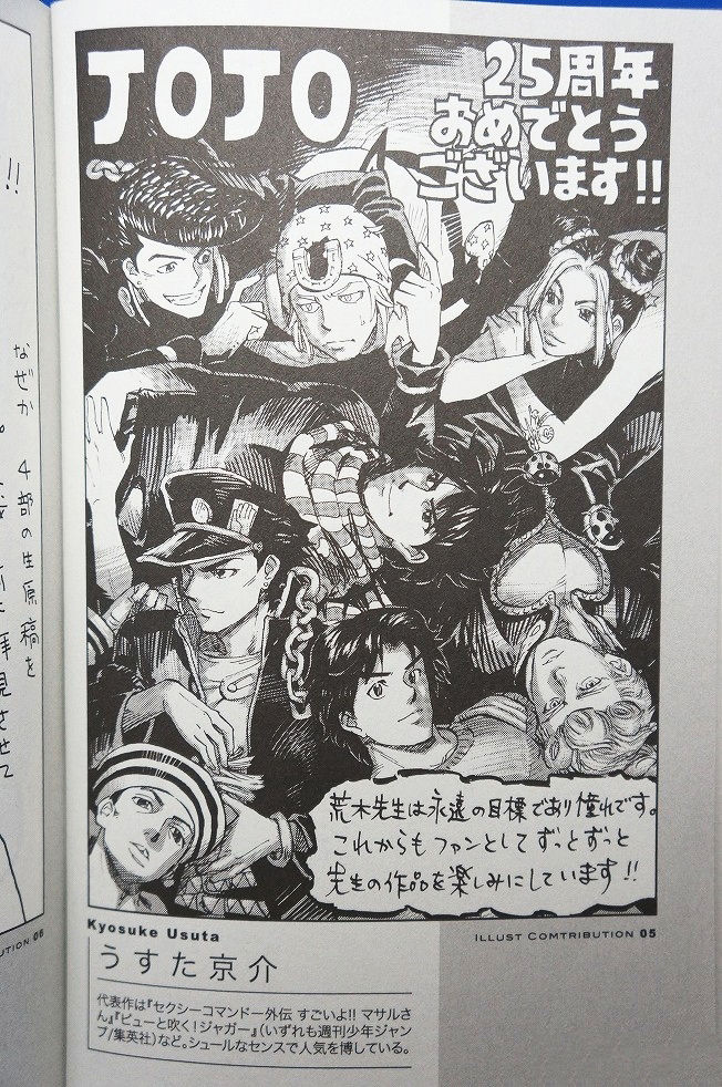 Kyosuke Usuta, autore di Pyu to Fuku! Jaguar presenta al pubblico non un solo personaggio, bensì gli otto protagonisti fin’ora disegnati da Araki in un unica tavola.