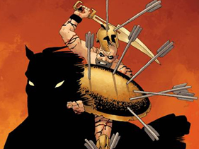 [Oggi, come allora, una belva si avvicina, paziente e sicura, assapora il pasto imminente. Ma questa belva è fatta di cavalli e uomini, di lance e spade, un’armata di schiavi vasta oltre l’immaginabile, pronta a divorare la piccola Grecia, pronta a soffocare la sola speranza che ha il mondo di giustizia, e ragione.]