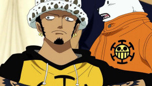 Trafalgar Law e il resto della sua ciurma degli Heart’s Pirates sono ancora ormeggiati ad Amazon Lily. La loro battuta di pesca viene però interrotta dall’inaspettato arrivo di un leggendario personaggio: Silver Rayleigh, il Vice Capitano della Ciurma del Re dei Pirati. Il “Re Oscuro” è giunto nell’isola a nuoto, percorrendo quindi da solo tutta la Fascia di Bonaccia, luogo zeppo di giganteschi mostri marini.