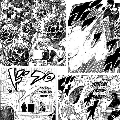 Arte della Fusione (Youton): posseduta da Mei Terumi, Dodai, Roshi e Kurotsuchi, sappiamo che è composta da Fuoco e Terra, la utilizzano quindi ninja del Villaggio della Nebbia e della Roccia. Ognuno degli utilizzatori possiede una variante molto personale di quest’arte. Mei la manipola sotto forma completamente liquida e bollente, Dodai ne utilizza una variante gommosa, quella di Roshi invece assume le sembianze di rocce piroclastiche, infine l’arte di Kurotsuchi ha la particolarità di essere calce a presa rapida. Come è possibile creare varie forme dell’arte della Fusione? Secondo me basta variare la quantità di Fuoco e Terra al momento della manipolazione. Usando più Terra si creano rocce infuocate e calce, usando più Fuoco diventa gomma o lava fluida.