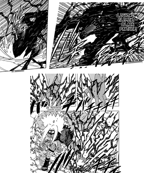 Arte dei Fulmini oscuri (Kuroi Kaminari): qui ci sono ancora più dubbi, infatti la tecnica non viene chiamata con il titpico suffisso elementale “ton” ma viene sempre definita come “Fulmine oscuro”. Appena la vidi pensai due cose: la prima è che mi ricorda il “Mille Falchi” che Sasuke usò durante lo scontro nella Valle dell’Epilogo al secondo stadio del segno maledetto, la seconda è che mi ricorda terribilmente l’Arte della Fiamma, e le cose secondo me sono proprio collegate. Secondo me, similmente all’Enton, quest’arte elementale è fusione di Fulmine e Ombra, Sasuke la usò inconsciamente proprio per la predisposizione all’elemento Yin.