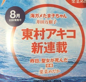 Lunedì di questa settimana il numero di Agosto della rivista Morning Two edita dalla Kodansha ha dato un annuncio ufficiale circa un nuovo manga scritto e disegnato da Akiko Higashimura, autrice di Kuragehime – La Principessa delle Meduse. L’autrice, infatti, lancerà una nuova serie, il cui titolo non è ancora stato annunciato, sul prossimo numero di Morning Two in vendita il 22 Agosto. Makiko Ida e Medaka Kurina, inoltre, lanceranno a loro volta i loro nuovi manga intitolati, rispettivamente, Umigame Tamako-chan (Tamako-chan, la tartaruga di mare) e Kinō, Seijo ga Shinda Kōhen (Ieri, una santa donna è morta, seconda parte). Entrambi i manga usciranno lo stesso giorno della nuova opera di Akiko Higashimura.
