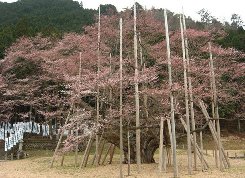 Questo albero situato a Neo, nella prefettura di Gifu è un ciliegio molto famoso. Si ritiene che sia stato piantato 1.500 anni fa da un imperatore e la sua caratteristica principale sono i suoi petali che cambiano gradualmente colore (come si può notare dalle due foto) da un rosa acceso ad un lieve color cenere. Grazie a questa particolarità deriva il suo nome che si traduce come “albero di ciliegio del colore dell’inciostro cinese”.