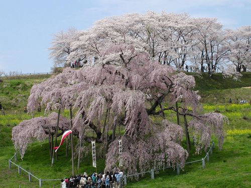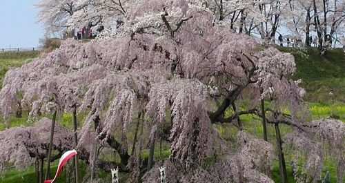 Il Taki-zakura si traduce come “albero di ciliegio a cascata” e si trova a Miharu nella prefettura di Fukushima, divenuta in seguito tristemente famosa per altro. Lo splendore di quest’albero è secondo solo alla sua età: più di mille anni. Ogni anno durante la fioritura porta a sé qualcosa come 200.000 di spettatori, incantati a guardare delicatezza e magnificenza fondersi col cielo.