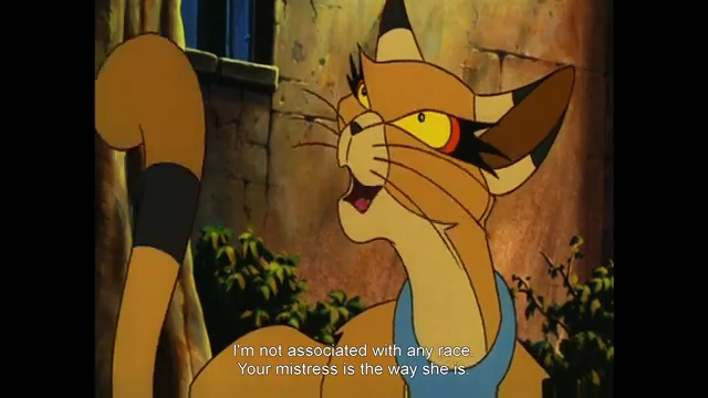 In questo film è molto presente l’ampio concetto di eugenetica e di indirizzamento della specie verso un risultato prefissato. Non tanto dall’uomo, quanto da parte degli stessi gatti. Il villain in questione per favorire l’andamento della popolazione felina della zona verso un output genetico da lui scelto comincia a uccidere certe gatte, o alcuni gatti che si rifiutano di accoppiarsi con chi lui dica. Qual è lo scopo? L’evoluzione? No, questo impiego basilare delle teorie mendeliane è mirato all’involuzione della specie. L’obiettivo è riportare la specie felina all’inselvatichimento per renderla più robusta e capace di maggiori “difese” dai soprusi umani. Eliminare le “impurità”. Permettetemi di sentenziare in modo maligno: un tema che non sorprende venga trattato da un tedesco. Se trasportassimo l’opera nel mondo umano e alla fine degli anni ’30 in Germania ci troveremmo nell’ambientazione perfetta. Ma a parte queste banalità, il tema eugenetico si fa vivo in tutto il suo lato peggiore tramite il controllo esterno. Ricorderò male, ma da quelle poche lezioni/conferenze di genetica che ricordo (e potrei ricordare male) si diceva che il pool genetico di una certa area è portato automaticamente a migliorarsi nel lungo periodo visto il progressivo decadere dei geni recessivi negativi ivi presenti, ed anche grazie al contributo di nuovi geni da pool genetici differenti. Ma potrei sbagliarmi. Sta di fatto che il controllo eugenetico non ha mai portato ad effettivi risultati, od almeno non che io sappia. Ma io sono un architetto, quindi con la genetica (mio passatempo) c’entro poco.