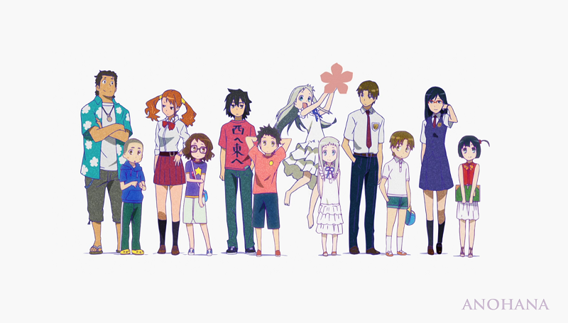 Il sabato noi di Komixjam trattiamo le serie in corso.. questo fine settimana andrà diversamente poichè ho deciso che avevo voglia di cambiare, trattare qualcosa di recente ma non troppo, al solo scopo di consigliarlo per coloro che non l’hanno ancora vista e ricordarlo a coloro che già la conoscono… ammetto che pensare a qualcuno che non conosce ancora Ano hi mita hana no namae wo bokutachi wa mada shiranai (traducibile come “Ancora non conosciamo il nome del fiore che abbiamo visto quel giorno da bambini”, in breve Ano hana) mi faccia uno strano effetto poichè la serie, uscita più o meno in Giappone due anni fa è stata acquistata e adattata dalla Dynit nel 2012 e trasmessa su Rai4. La celerità con cui si sono procurati il titolo è un’ulteriore garanzia della qualità del prodotto in questione. Lo studio coinvolto nella produzione è l’A-1 Pictures, che è quasi sempre sinonimo di qualità (Fairy Tail, Sword Art Online, The Idolm@ster, Tsuritama).