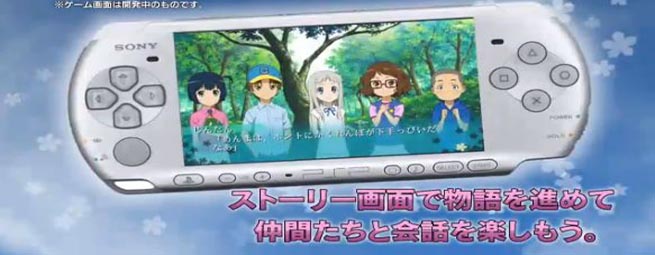 Il videogioco di AnoHana uscirà in Giappone il 30 Agosto di quest’anno per PlayStation Portable. La versione standard costerà 6090 yen (circa 62€). La premium edition, invece, costerà 10290 yen (circa 105€) e includerà una custodia speciale di latta, un drama CD, la sceneggiatura del drama CD e due poster.