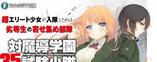 Tōki Yanagimi ha cominciato a pubblicare la serie di light novel di AntiMagic Academy “The 35th Test Platoon” nel 2012, con illustrazioni di Kippu (No-Rin), e la Fantasia Bunko di proprietà della Fujimi Shobo ne ha pubblicato il decimo volume il 22 Maggio di quest’anno. Sutarō Hanao ha adattato la storia in un manga di tre volumi che è stato pubblicato sulle pagine della rivista Dragon Age della Kadokawa tra il 2012 e Maggio del 2014. Yohei Yasumura ha lanciato un nuovo manga tratto da AntiMagic Academy “The 35th Test Platoon” sul numero di Febbraio di un’altra rivista della Kadokawa, Comic Alive.