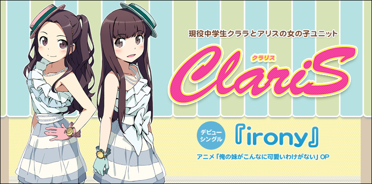 Le ClariS sono una coppia di ragazze delle scuole medie, originarie dell’Hokkaido, la più settentrionale delle quattro isole principali dell’arcipelago giapponese. Il duo ha cantato sia la sigla di apertura dell’anime Oreimo sia quella di Puella Magi Madoka Magica. La sigla di Oreimo, intitolata irony, ha venduto più di quattordici mila copie e si è piazzata al settimo posto nella classifica dei singoli più venduti nella prima settimana dal debutto. Successivamente si è piazzata sesta nella classifica dei singoli più venduti in Giappone da un nuovo artista nel 2010.