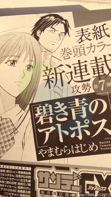 L’autore di manga Hajime Yamamura lancerà una nuova serie intitolata Aoki Ao no Atopos sul numero di Ottobre della rivista Sunday GX edita dalla Shogakukan e in vendita il 19 Settembre di quest’anno. La stessa Sunday GX ne ha dato l’annuncio in occasione della pubblicazione del numero di Settembre, uscito lunedì di questa settimana.