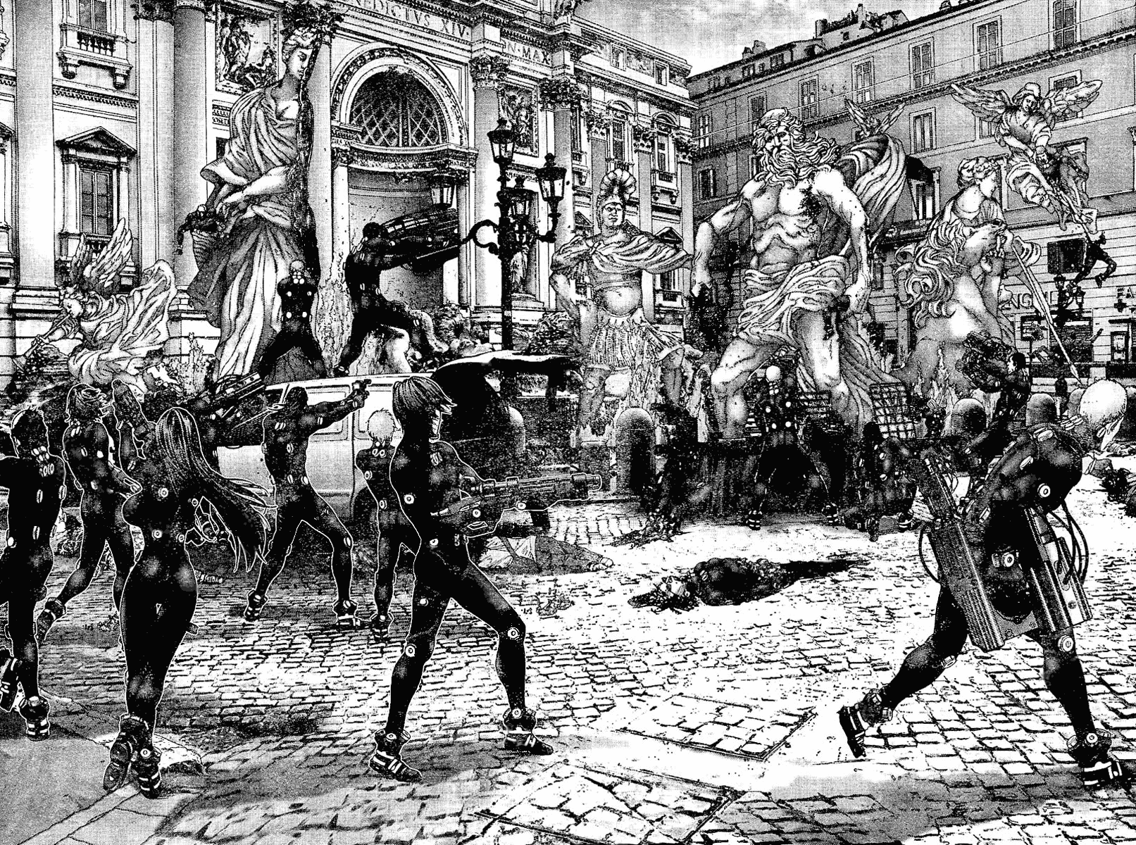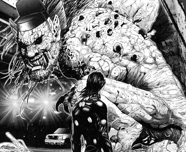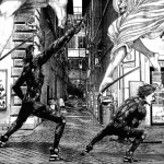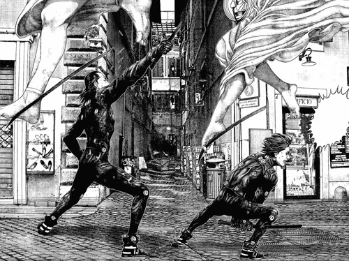 Cosa mi ha colpito di Gantz? Innanzitutto la trama abbastanza inconsueta e ricca di colpi di scena, misteri da svelare pian piano. Inoltre mi è piaciuto molto dal punto di vista strettamente grafico, sia l’anime che il manga, ma più la versione cartacea, sopratutto per la qualità delle scene e degli sfondi. Pare che Hiroya Oku, il padre di Gantz, usualmente utilizzi la computer grafica, oltre che la tecnica manuale, per realizzare le ambientazioni (ed ecco spiegato il motivo per cui riesce a sfornare sfondi così particolari in brevissimo tempo!), anche se si rammarica del fatto che perde molta dell’empatia che si crea quando le tavole si fanno completamente a mano. La caratterizzazione dei personaggi femminili, sopratutto quelle giovani, è abbastanza “standardizzata”: non si riesce a trovare una ragazza che non abbia il seno prosperoso e un corpo da favola (a parte le vecchiette, ma questo è fisiologico), mentre quelli maschili sono più variegati; l’elemento erotico femminile però passa in secondo piano quando si tratta di apprezzare certe scene d’azione. Diciamo che non è adatto per i deboli di stomaco, visto che molte scene sono particolarmente splatter (dopotutto è un seinen).