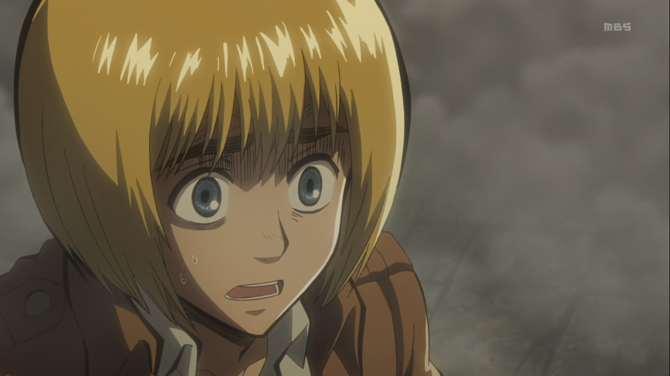 Riassunto: In quest’episodio ritroviamo i nostri protagonisti dopo il lancio della palla di cannone e del tentativo disperato di Eren di provare a salvarsi.Il comandante non sembra aver cambiato idea e Armin, dopo che Eren gli ha affidato le sue ultime speranze, prova a lanciarsi disarmato oltre il fumo che li circonda per poter cercare di convincere il comandante che Eren non è in nessun caso una minaccia. Il tentativo di Armin fallisce miseramente, poiché il comandante, sconvolto dalla paura non riesce più a ragionare e, solo l’intervento del comandante Pixis, riesce a salvare la vita dei ragazzi.