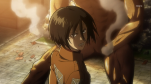 Riassunto: In quest’episodio vediamo come il fallimento del piano di Armin stà coinvolgendo tutti i soldati;Eren sembra rimanere bloccato e quasi incosciente dopo essersi auto-colpito nel tentativo di colpire Mikasa che stava cercando di comunicare con lui in forma gigante. La squadra d’elite dopo alcune perplessità iniziali decide di proteggere Eren anche a costo di morire sul campo perché è l’unica arma che l’umanità ha contro i giganti che potrebbe davvero cambiare la situazione attuale.