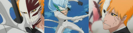 Riassunto: La battaglia epica ha la sua fine, lo scorso episdodio vedeva ichigo sferrare un colpo mortale a grimmjow, questi però non accusa in realta molto il colpo e ne sferra subito dopo uno ancor più potente all’avversario, in questo episdio verrà dato largo spazio alla costituzine dell’ Hueco Mundo in particolare degli hollow e del loro sviluppo, e si vedrà anche il passato di grimmjow quando ancora era un audajachas.