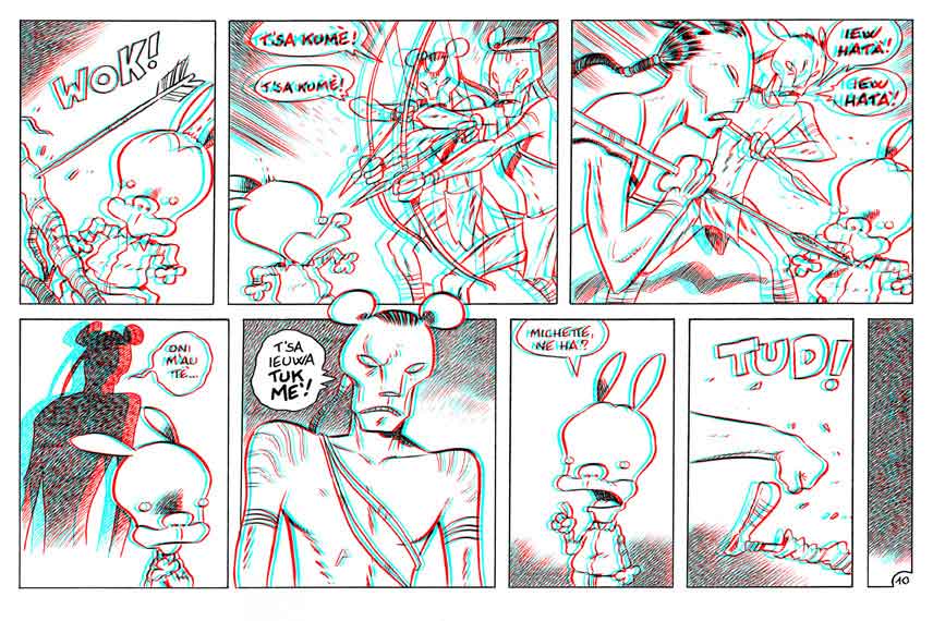 Alla scorsa edizione del Lucca Comics & Games (2010), nello stand Panini, gli sguardi dei “discepoli” di Ortolani si posavano su una nuova opera legata al mondo di Rat-man; questo speciale era in formato “wide-screen” (tanto per utilizzare un termine cinematografico), e recava sulla copertina le figure riconoscibili (anche se disegnate con lo stile di Ortolani) degli umanoidi blu che nei mesi precedenti avevano sbancato i botteghini nel famoso e innovativo Avatar. Sebbene questo fosse più che sufficiente a spingere un po’ tutti i presenti a volerne una copia, c’era qualcos’altro che, nell’angolo in alto a destra della copertina, attraeva i passanti, ovvero la scritta: “Fumetto in 3D”.