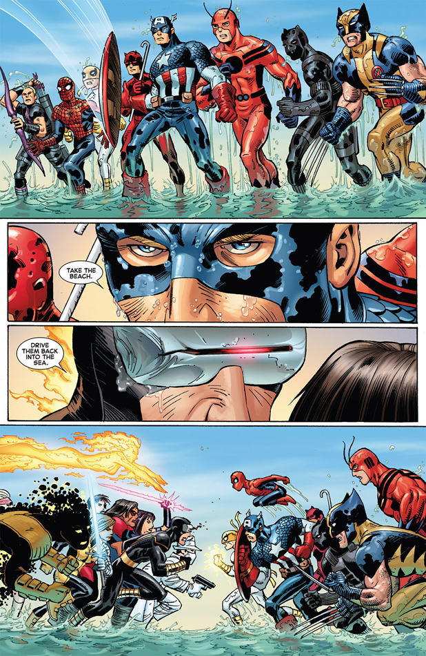 Questo, signori, era l’antefatto a Marvel Now! Dalla ricostruzione dopo le devastazioni della Fenice Nera, Capitan America si rende conto del fatto che su una cosa Ciclope aveva ragione: i Vendicatori hanno ignorato i mutanti troppo a lungo. I mutanti sono di nuovo molti, e sono una realtà con la quale regolarsi. Un nuovo giorno sorge sull’Universo Marvel, dove tutto deve cambiare perchè nulla cambi.
