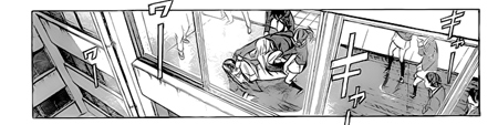 Saikou: “ non ci volle molto prima che il preside lo venisse a sapere… E shuujin si beccò una settimana di sospensione… Già era calato nei voti… Ci mancava solo quella…”