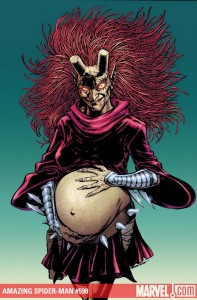 La storia dei supereroi è parecchio strana, tante volte uno sceneggiatore riesce a farci amare una serie e quello dopo rischia di farcela odiare. Naturalmente a questa regola non ha fatto eccezione nemmeno l’icona dei fumetti di casa Marvel, che con l’avvento del Brand New Day ha fatto storcere il naso a moltissimi lettori, probabilmente però il problema della nuova veste di Spiderman non è solamente un problema di storie scadenti o di anni di continuity bruciata ma anche il fatto che molti di noi hanno ancora fresco quello che sarà ricordato come un ciclo storico del ragno ovvero quello targato Romita e Straczynski. Però posso dire che sebbene per il momento abbiamo letto probabilmente la parte peggiore di questo “rinnovamento” le cose sembra veramente stiano cambiando rotta ed a riprova di questo la casa delle idee ci delizia con la presentazione del numero 598 di Amazing Spider-Man seguita da una brevissima traccia che dice: ” Questa copertina vi dice molto più di quello che avete bisogno di sapere. C’è un ostetrica malvagia in casa?!?”. Chi legge il ragno da anni capirà immediatamente il perchè ho rischiato di cadere dalla sedia… infatti la continuity ragnesca vanta un’ostetrica che ha lasciato uno dei più grossi interrogativi ai lettori del ragno anni ’90: “May Parker è veramente morta?”. Infatti alla fine della saga del clone la figlia avuta da Mary-Jane e Peter sembrava essere stata rapita dall’ostetrica che si era presa cura di MJ e poi, con ogni probabilità, affidata a Norman Osborn; però questo in un certo senso verrebbe a cozzare con le logiche del Brand New Day visto che Spidey e la rossa non sono mai stati sposati. Naturalmente la cover rappresenta Minaccia incinta, e questo potrebbe aprire ancora nuovi scenari, come per esempio un ipotetico figlio di Harry Osborn che potrebbe dare un nuovo spunto, sebbene Harry nella vecchia continuity avesse già avuto dei figli, o ancora si potrebbe trattare di Norman il quale ha già mostrato interesse per le giovani, quando la saga che raccontava il fatto che avesse concepito due gemelli con Gwen Stacy suscitò lo sdegno di migliaia di fan. Però queste sono le ipotesi che suscita la sola visione della cover, poichè il trafiletto che ci viene dato in pasto dalla Marvel lascia intendere tutt’altro parlando di questa fantomatica “evil obstetriscian”. Cosa ci preparano gli sceneggiatori per festeggiare il numero 600 di Amazing…?