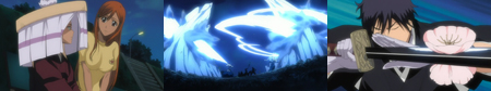 Mentre le due parlavano, le attaccò il solito ansatsu che le attaccò, e dopo aver resistito per qualche minuto, Orihime sembrava spacciata, fin quando arrivarono Kenryuu e Enryuu a salvarla. Dato che Ichigo e Rukia avevano le Zanpakutou bloccate all’interno di alcune rocce, Kenyuu si offrì di distrarre l’ansatsu con la sua Zanpakuto Benishidare, la quale riempì di fiori la spada del nemico, rendendola inutilizzabile, e permettendo ai due Shinigami di mettere KO il nemico.