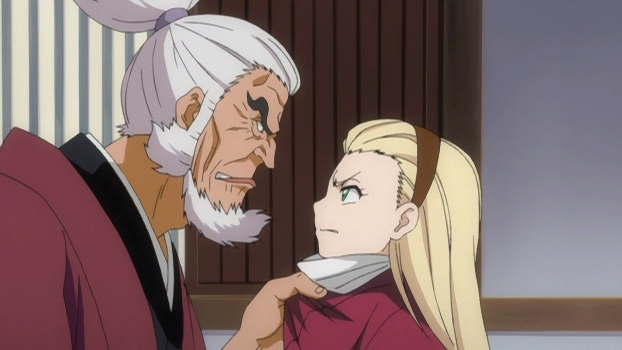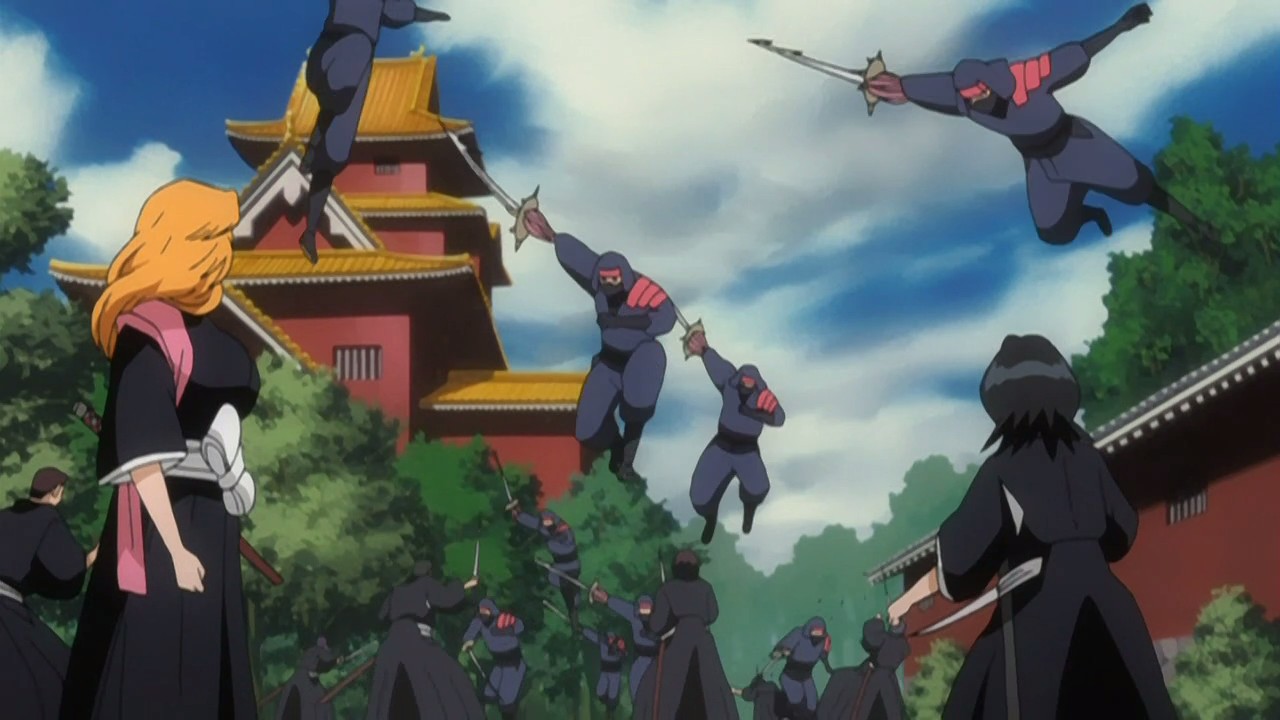 Riassunto. Dopo che Renji aveva fatto vedere a Yamamoto la zanpakutou che utilizzava Kifune, il vecchio ordinò a tutte le divisioni di non combattere più tra loro, e di catturare i traditori della famiglia Kasumi-Ouji. Dopo aver combattuto contro ninja anonimi e inutili, grazie all’aiuto di Shu, Ichigo e Rukia riescono a trovare Rurichiyo, che però era prigioniera di Kumoi, intenzionato a sgozzarla. A salvare la situazione e a colpire mortalmente il vecchio fu Amagai, che però portò con sé la ragazzina. In punto di morte, Kumoi disse che aveva fatto ciò che gli aveva detto e che quindi non capiva perché ucciderlo a quel modo. Amagai si presentò dunque, direttamente al cospetto di Yamamoto, insieme alla povera Rurichiyo.