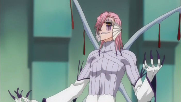 Riassunto. Si ritorna sulla battaglia di Renji, Ishida, Pesshe e Dondochakka contro Szayel Aporro. Dopo aver ripercorso il combattimento precedente, Szayel Aporro ingoia la sua spada, Fornicarás, per rilasciare la propria forma resurrección, caratterizzata, tra l’altro, da strane escrescenze che ricordano vagamente delle ali e che sono il suo punto di forza. Szayel Aporro rilascia un liquido scuro che ha il potere di creare una copia di qualunque persona con cui entri in contatto, avente le stesse abilità di quest’ultima; per complicare le cose, l’Espada dice di aver rimosso le limitazioni che impedivano ai suoi avversari di usare le loro tecniche migliori. Mentre Renji e compagni sono impegnati in un combattimento totalmente equilibrato, continua lo scontro tra Ichigo e Nnoitra.