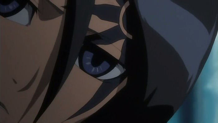 Riassunto. Mentre Hanatar? cerca di raggiungere Byakuya, Zommari rilascia la sua spada trasformandosi in un essere con molteplici occhi, ognuno dei quali può prendere il comando di un oggetto che vede. La prima cosa ad essere controllata è il piede sinistro di Byakuya, ma questi non esita a recidere i nervi della propria gamba per impedire al suo nemico di comandarla. Zommari guarda poi in direzione del corpo esanime di Rukia, ma Byakuya le si para davanti. Nel frattempo arriva Hanatar?.