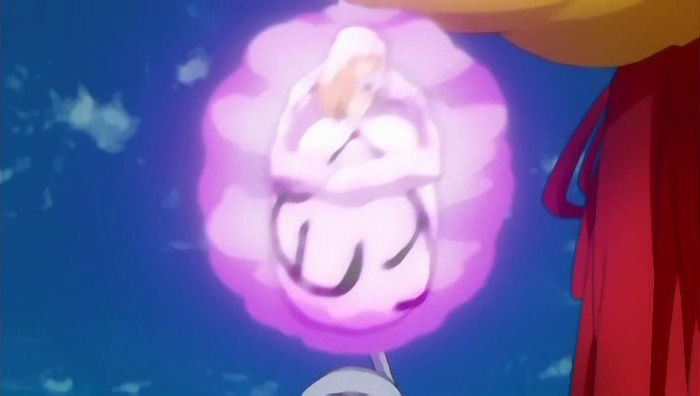 Riassunto. Rukia viene curata dal vice-capitano Kotetsu e da Hanataro e si scusa con Byakuya per la ferita che lui ha ricevuto per colpa sua, mentre Ichigo dice a Rukia di curare prima Nel di lui. Lo scontro fra Kenpachi e Noitra prosegue e l’espada nota che Kenpachi non è uno shinigami qualunque. Quando Mayuri credeva di aver ormai vinto la battaglia contro Aporro, quest’ultimo resuscita usando il corpo del vice-capitano Nemo, che per questo muore. Aporro insulta Mayuri per avere una subordinata cosi’ debole, e, dopo che il capitano esamina la tecnica del suo avversario, lo fa infuriare dicendo che la resurrezione non è per niente sorprendente.
