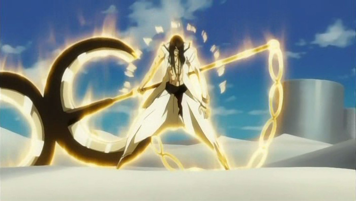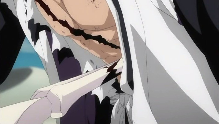 Riassunto. Kenpachi capisce che Nnoitra può essere tagliato, contento per questo lo attacca con grande furore e gli provoca due tagli, prima sul braccio e sulla faccia, e successivamente gli taglia in due l’arma. Irritato, Nnoitra lo attacca e gli rovina la benda, che poi si toglierà. Kenpachi spiega all’avversario che la benda serviva a contenere il proprio reiatsu. Temendo per la sua vita Nnoitra rilascia la sua spada, e quando il polverone si dirada, si scopre che l’espada ha fatto crescere altre due braccia, impugna quattro falci, il suo reiatsu cresce notevolmente e le sue ferite guariscono.