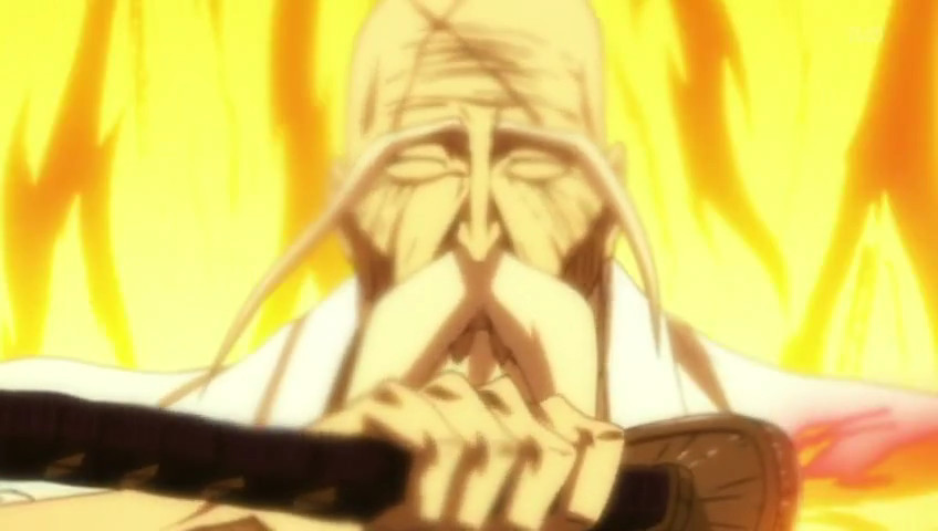 Riassunto: Aizen capisce appena arrivato che quella non è karakura e dice che ha lasciato Las Noches nelle mani di Ulquiorra. Non sapendo come fare ad affrontare tutti i nemici, Genryuusai decide di impedire ad Aizen di combattere almeno fino a quando non avranno sconfitto gli espada. Per far questo usa una tecnica con cui avvolge, tramite la sua zanpakuto, nelle fiamme Aizen, Gin e Tousen, che decidono di non fare niente pensando che gli espada siano abbastanza per battere gli shinigami.