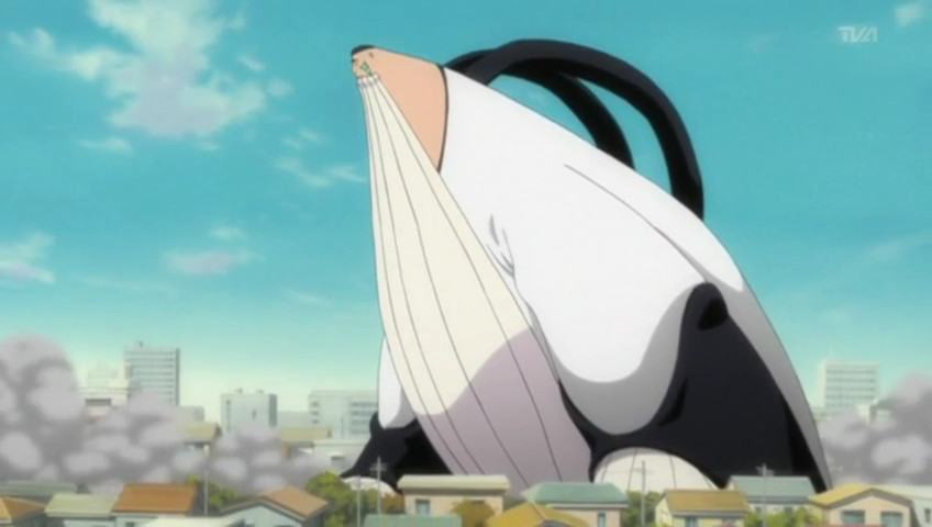 Riassunto: Ikkaku si rialza e comicia a lottare con il suo avversario, ma viene rovinosamente sconfitto. Nel momento in cui sta per essere ucciso, arriva il capitano Komamura, che con un pugno fa volare via il nemico. Tuttavia egli si rialza immediatamente e a sua volta colpisce lo shinigami, vantandosi del suo pugno visibilmente più potente. Quindi procede immediatamente con la resurrectiòn, diventando incredibilmente grande.