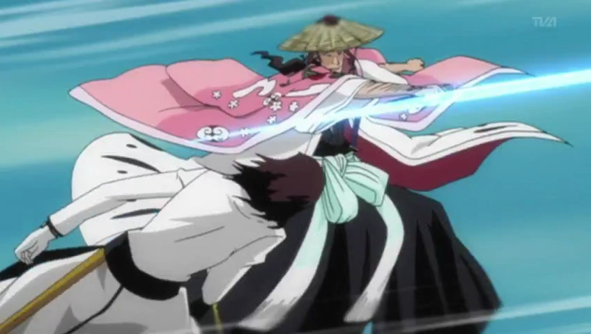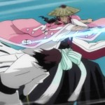Riassunto: Procedono gli scontri tra shinigami ed espada, tra cui quello tra Matsumoto e la fractiòn di Halibel. Queste, grazie al loro numero si trovano in vantaggio rispetto al vice-capitano, che sul punto di morire viene salvata da Hinamori, la quale la affianca in combattimento. Inizia anche lo scontro tra Kyouraku e Stark, tuttavia il secondo non sembra intenzionato a combattere seriamente.
