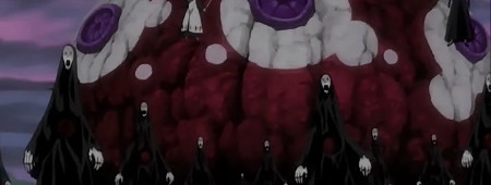 Riassunto: Nello scorso episodio abbiamo lasciato Orihime e rukia salvate da Sode on Shirayuki da un Cero di un Menos Grande, e con lei, dietro, le altre zanpakut? del gotei13 assieme ai loro shinigami, rinsavite grazie all’intervento del capitano Kurotsuchi Mayuri. Partono così all’attacco delle schiere dei Menos Grande che infestano le vicinanze (rubando la scena ai loro shinigami XD). Il capitano Soifon, con al dito Suzumebachi, parte in attacco, usando lo shunk?, contro l’enorme massa di raiatsu fuori controllo di Muramasa, che ormai si ingrandisce sempre più, allargando il garganta, ma viene fermata da un attacco di Ishida, poiché il capitano potrebbe mettere in pericolo la città di Karakura e Ichigo, bloccato ancora al suo interno. (mi chiedo perchè si comporta così con Orihime, Sado e Ichigo, suoi k?hai. Mah.). Le zanpakut? e i loro shinigami, tra un intermezzo comico e l’altro, come tra Omaeda e la sua zanpakut?, continuano a sterminare Menos, ma continua