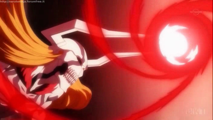 Ichigo risponde al richiamo disperato della sua amica, rialzandosi dal suolo, con una esplosione della sua nera raiatsu, mostrando la sua nuova maschera. Riprende fin da subito la sua Zanpakut?, con un fendente a vuoto, non curandosi di Inoue, che gli è vicinissima. Ulquiorra, abbastanza sorpreso, intende finirlo una seconda volta col suo cero oscuras, ma, incredibilmente, ichigo risponde con un altro vero e proprio cero, sovrastandolo in potenza. Come può un umano usare un cero?