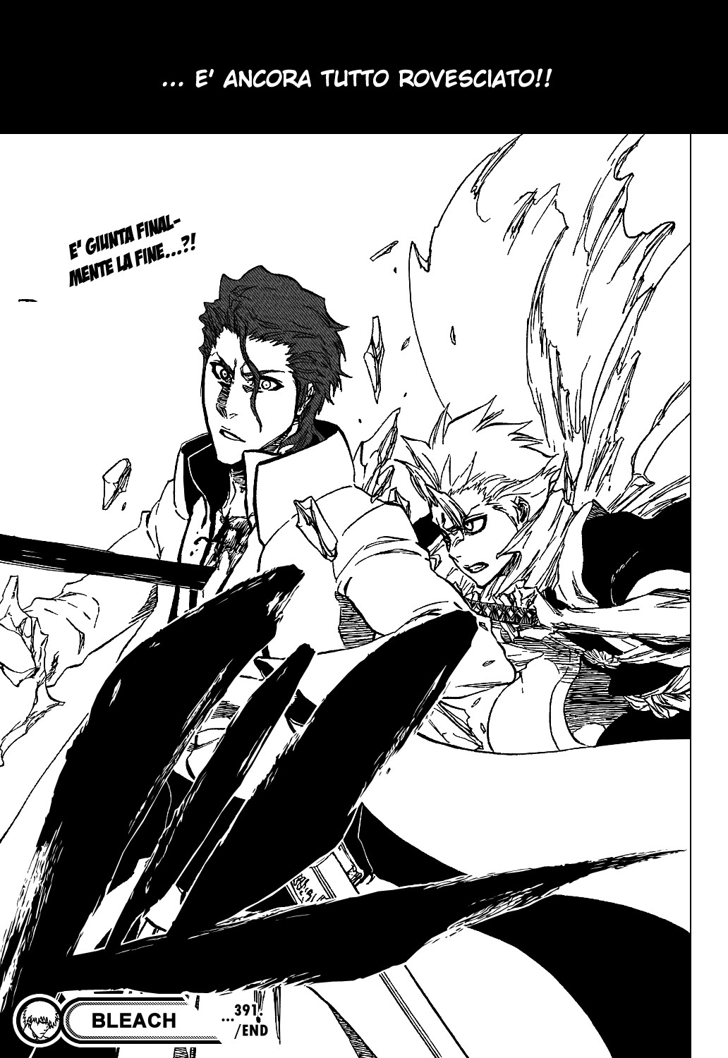 Riassunto: Hitsugaya, in preda alla collera, attacca Aizen cercando di non dargli il tempo di usare la sua tecnica preferita, Kyouka Suigetsu. Gin, in quel momento spettatore dello scontro, se la ride sotto i baffi perchè ritiene tutto ciò una mossa inutile contro Aizen. A favore di Hitsugaya, intervengono il Capitano Komamura, Love e Rose. Nonostante l’intervento di questi, non basta per metterlo in difficoltà. Ad avere il peggio è il Capitano Komamura che viene puntualmente umiliato da Aizen usando semplicemente la sua Zanpakutou. Gin spiega che il motivo per cui il Capitano Aizen faccia così tanta paura non è affatto l’uso della tecnica di Kyouka Suigetsu ma per il fatto che, anche senza di essa, è considerato “dannatamente forte” e considera il suo potere ancora più terribile di quanto si possa immaginare