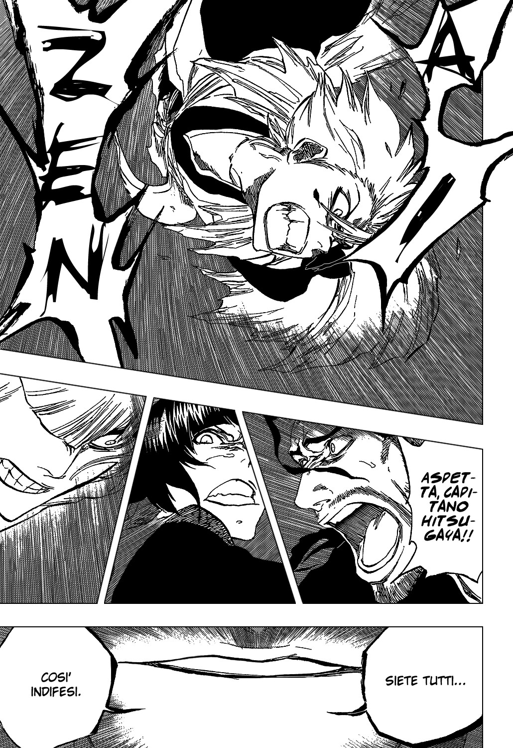 Riassunto: Il capitolo contiene alcune pagine a colori sui cui sono annotate i risultati del sondaggio sugli scontri più popolari della serie. Hitsugaya ha colpito Aizen e tutti i presenti si lasciano alle spalle tutte le paure gridando vittoria e sprizzando felicità. Ma qualcosa non va. Hinamori, che in quel momento era a terra ferita, si alza e avanza incurante delle grida dei suoi compagni; Ichigo ha una faccia terrorizzata e grida ai suoi compagni cosa stessero facendo. Si rivela che alla fine ciò chi aveva colpito Hitsugaya non era Aizen, ma proprio Hinamori! Stupore generale ed incredulità tra i presenti mentre Hirako chiede ad Aizen quando abbia usato Kyouka Suigetsu. Aizen gli risponde che non c’è mai stato un momento in cui non abbia usato il suo potere. Il povero Hitsugaya, alla vista di Hinamori morente, cede alla rabbia e con uno sguardo furente si lancia incoscientemente contro Aizen. Hirako, Soifon e Kyouraku tentano di fermarlo ma tutti e quattro vengono sconfitti in maniera imbarazzante da Aizen.
