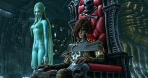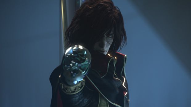 Conosco le vicende e il personaggio del pirata capitano dell’Arcadia sin da bambino: prima grazie all’anime, poi grazie al manga di Matsumoto (di cui custodisco gelosamente una delle poche copie stampate della versione Planet Manga di quasi venti anni fa!) Ho sempre ammirato Harlock per la sua “evanescenza”, per essere un personaggio che non si schiera né con il bene né con il male, quasi fosse superiore a queste “inutili classificazioni” della società, un uomo votato ad un fine superiore rispetto alla sconfitta del cattivo tipico di altri personaggi comunque ambigui nella storia del fumetto. Harlock è un difensore del bene e della pace, ma non sta mai a farsene un vanto, a dichiarare apertamente che è venuto il momento di “salvare la situazione”: egli, semplicemente, agisce, schierandosi contro Cyborg, Mazoniane e uomini dalla dubbia morale, portando la sua giustizia, fatta di colpi di spada (laser) e cannonate in ogni angolo dell’Universo. Eppure, questo Harlock tridimensionale, forse perché più vicino ad un essere in carne ed ossa, che a una macchia di colore su una superficie di acetato, ha fatto un passo in più, ha superato i suoi stessi confini etici, divenendo per la prima volta un vero “Salvatore”, una sorta di Dio, non riconosciuto ufficialmente, destinato a punire tutti i peccatori e riportare la storia ad un punto da cui poter ricominciare l’avventura. Una sorta di eroe dell’epilogo, che ultimamente va molto di moda, conscio di essere diventato, da una parte, superfluo per il moto armonioso degli ingranaggi del destino e, d’altra parte, assillato dalla responsabilità di aver determinato, con le sue stesse azioni, un fato che non risulta, in definitiva, quello auspicato al principio. Forse anche la mancanza di personaggi tipicamente più “comici” (il Dottore e la Cuoca), che nel manga smorzano certi momenti di tensione, tipici della narrazione di Matsumoto che, se volesse, riuscirebbe a rendere cupo e triste anche un arcobaleno (se non avete mai letto Galaxy Express o Queen Emeraldas, sappiate che ci sono capitoli che potrebbero spingervi al suicidio, per la loro “negatività”), rende tutta la vicenda molto più “oscura” e nichilista rispetto alle vicende narrate dall’anime il quale, tuttavia, era fortemente edulcorato, anche se non a livelli di opere quali Devilman (che sembrava una storiella per bambini).