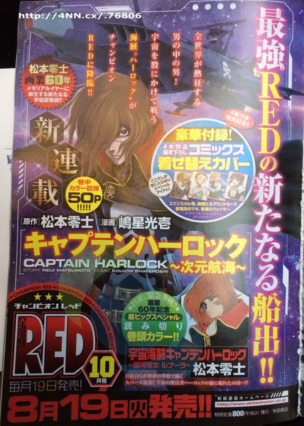 Sabato di questa settimana il numero di settembre della rivista Champion RED edita dalla Akita Shoten ha annunciato che Leiji Matsumoto (Space Battleship Yamato, Star Blazers, Galaxy Express 999) lancerà la pubblicazione di un nuovo manga di Capitan Harlock intitolato Capitan Harlock ~Jigen Kōkai~ (Capitan Harlock: Viaggio dimensionale) sul prossimo numero della rivista stessa in vendita il 19 Agosto. Kōichi Shimahoshi si occuperà delle illustrazioni della serie, e il primo capitolo, che avrà una lunghezza di cinquanta pagine, includerà alcune pagine a colori.