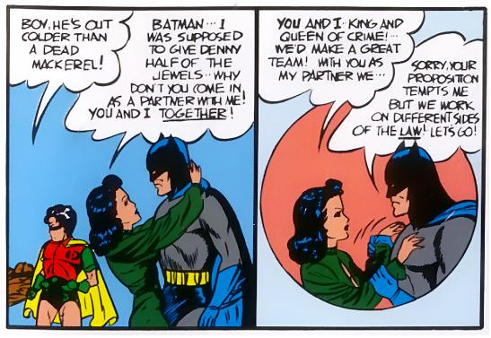 Aiuterà Batman nelle sue primissime comparsate come paladina della legge ma ritornerà al crimine in pochissimo tempo, troppo affascinata dai gioielli e dalla vita lussuosa.