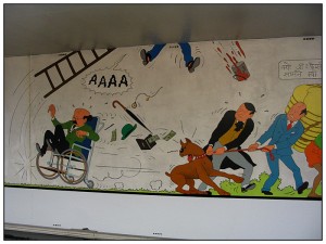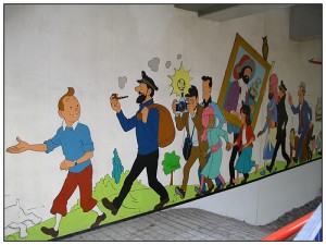 Nella metropolitana di Bruxelles è possibile osservare alcuni murales che ritraggono il mitico Tin Tin mentre va all’avventura col suo ancor più mitico cagnolino Milù, un fox terrier bianco coraggiosissimo.
