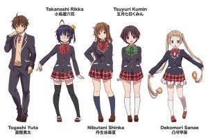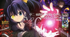 Prima che iniziate a preoccuparvi, andando a controllare le condizioni di parenti, amici e conoscenti di quell’età, voglio tranquillizzarvi dicendovi che questa sindrome è stata creata dalla fantasia di Torako, autore della light novel Chūnibyō Demo Koi ga Shitai! (che vuol dire più o meno “voglio un appuntamento indipendentemente dalla mia adolescenziale illusione di grandezza”), da cui è stata tratta una serie animata attualmente in corso (al settimo episodio mentre leggete queste righe). Probabilmente ispirato dal sempre più frequente fenomeno dell’alienazione giovanile, dello sviluppo di paranoie e comportamenti stereotipati, Torako ha deciso di scrivere questo breve racconto, che al giorno d’oggi, è costituito soltanto da due volumi, mentre l’animazione è opera della Kyoto Animation (fatto non strano poichè la novel venne premiata da una commissione dello studio di produzione nel 2010).