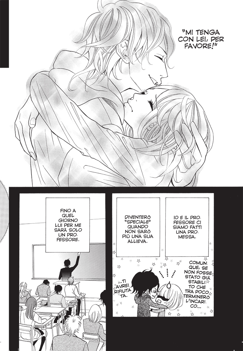 Eh già. Prima, con la docente curriculare, i voti erano nella media ma da quando questa si è presa l’aspettativa per maternità ed è arrivato Haruka, il supplente ventiquattrenne, questi sono immediatamente calati. Antipatia del professore verso l’alunna o rifiuto della materia da parte della materia a causa del carattere “poco professionale” del professore? Fatto sta che iniziano le lezioni private, finiscono e Yuni si dichiara. La risposta la soddisfa: aspettiamo che io smetta di essere il tuo docente e poi iniziamo a frequentarci. Ma siccome “la fortuna sarà bendata, però la sfiga ci vede bene” ecco che arriva una comunicazione scolastica: la professoressa in maternità ha avuto un altro figlio quindi prolungherà il suo periodo lontana dall’insegnamento; in altre parole Haruka sarà docente di Yuni più a lungo del previsto.