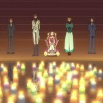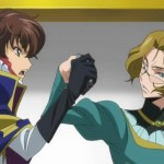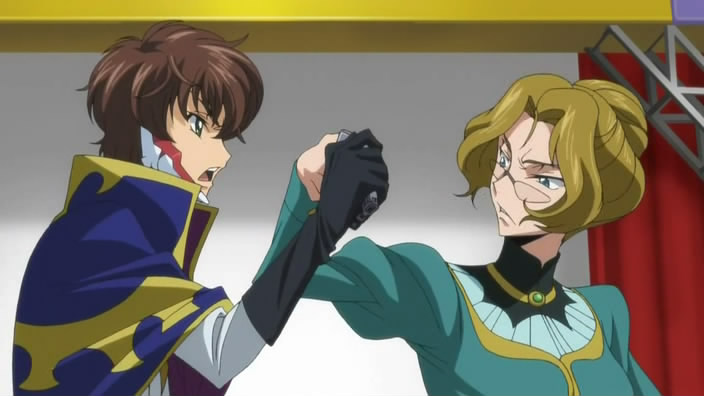 Mentre Suzaku parla con Anya (uno dei Knights of Rounds), arriva una guardia che gli chiede di firmare l’esecuzione del soldato che l’aveva aggredito. Suzaku esita, ma Anya firma per lui. Anya gli chiede se è un masochista, se gli piace essere odiato. Suzaku le risponde che non gli interessa essere capito ormai, poichè in passato c’è già stata una persona che aveva capito le sue motivazioni, la Principessa Euphemia. Zino (o Gino, come preferite), il terzo Knight of Rounds, arriva ad annunciare che è arrivata la chiamata di Zero.