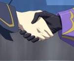 Lelouch quindi lascia C.C. ed i Cavalieri Neri e si riunisce con suo fratello. Lelouch gli dice che deve pensare ad una strategia per combattere contro i Rounds, ora che il Tristan ed il Mordred si sono uniti al Lancelot la situazione è difficile da gestire. Rolo gli dice che lui può pilotare il Vincent, ma Lelouch gli dice di non pensare più a cose del genere. Tornati a scuola Lelouch incontra Shirley che sembra giu di morale e le chiede se sia successo qualcosa. Prima che lei possa rispondere, Lelouch viene colto di sorpresa dalla presenza di Gino ed Anya che si sono appena iscritti all’Accademia Ashford per “sperimentare la vita di normali studenti.”