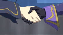 Zero fa notare a Xing Ke che ormai lui è l’unica persona con cui potrebbe allearsi, ma Xing Ke gli dice che non sarà mai un suo sottoposto. Zero risponde che ciò non è necessario, e che Xing Ke è perfettamente in grado di condurre un paese. Xing Ke gli chiede se abbia intenzione di ribaltare la situazione solo con il suo Knightmare, e Zero gli risponde che per vincere non serve la tattica ma la strategia. In quel momento arriva un rapporto urgente a tutte le navi dicendo che in varie città della Cina sono scoppiate in contemporanea delle rivolte. Sull’Avalon si rendono conto che Zero aveva trasmesso in diretta la sua conversarione con i Capi Eunuchi a tutta la Cina. Sull’Avalon non sapevano neanche che i Capi avevano parlato con Zero senza il loro consenso. Schneizel visualizza la conversazione.