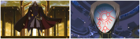 Lelouch si rende conto che non ha modo di vincere ora. Charles quindi attiva un meccanismo che trasporta Lelouch in una qualche dimensione piena di maschere.