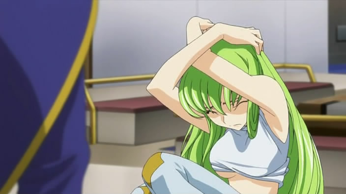 Tornato nelle sue stanze, Zero prova a re-introdurre C.C. alla pizza. (LOL)