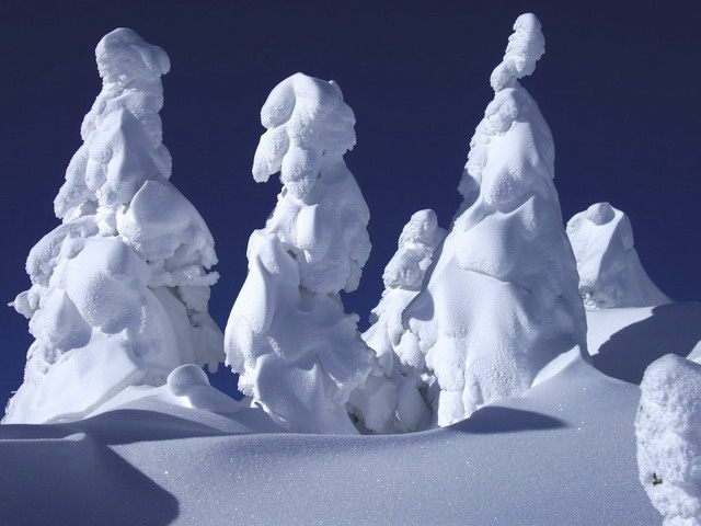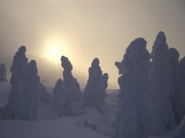 L’immagine che evocano è di assoluta imponenza e qualche volta, dato il loro aspetto inquietante suscitano un po’ di timore tant’è vero che in alcuni casi, quando il fenomeno porta a gigantesche strutture di ghiaccio queste sculture naturali vengono chiamate mostri di neve, The Snow Monsters.
